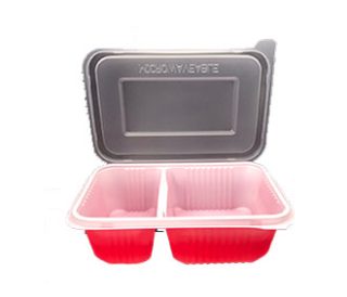 (TLH-RW02) กล่องใส่อาหาร 2 ช่อง สีแดง+ขาว ขนาด 750 ml.