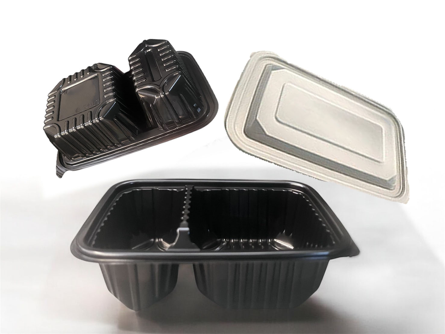 กล่องใส่อาหาร ฝาแยก 2 ช่อง ขนาด 750 ml. สีดำใส